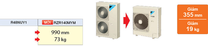 - Khối lượng công việc dành cho lắp đặt được giảm xuống nhờ dàn nóng có trọng lượng nhẹ và gọn.